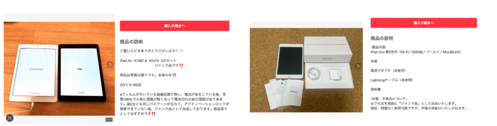 文言だけでなく、写真も添えると購入者が判断しやすくなります。