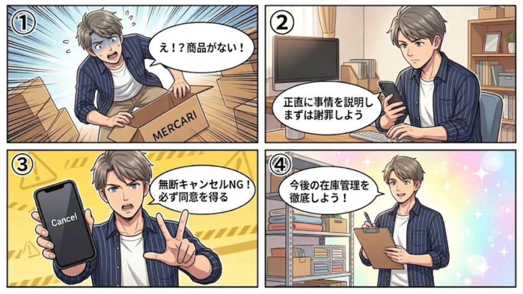 購入者からキャンセルの了承を得てから手続きに進む。 - 今後の在庫管理を徹底する
