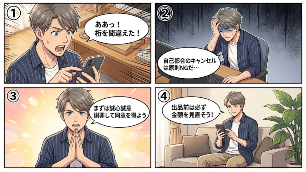 操作ミスや不注意を素直に認め、誠心誠意お詫びを伝える。 - 出品者の合意を得る
