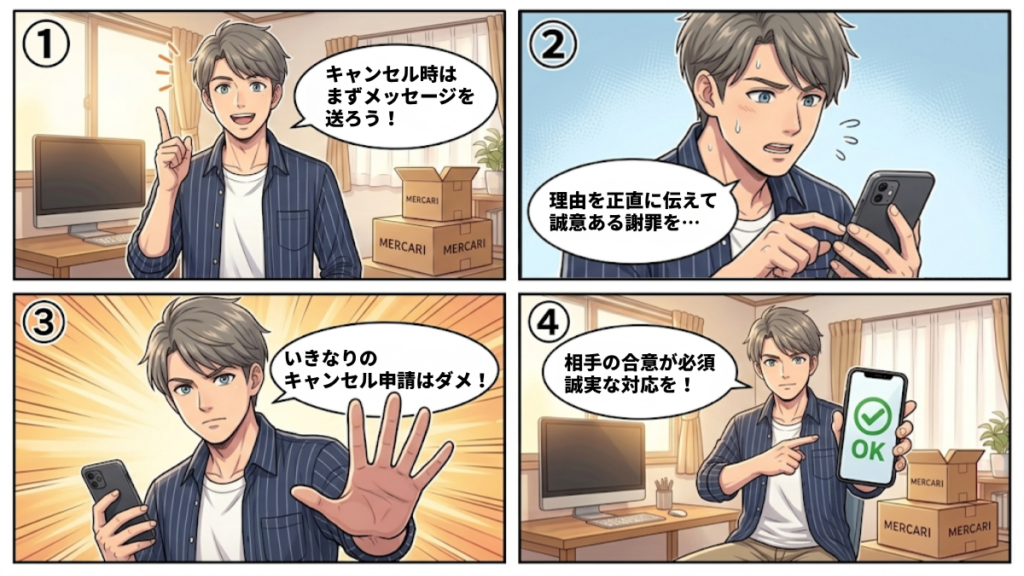 メルカリでペナルティを避け、スムーズにキャンセルを完了させるには、決められた手順を守ることが不可欠です。