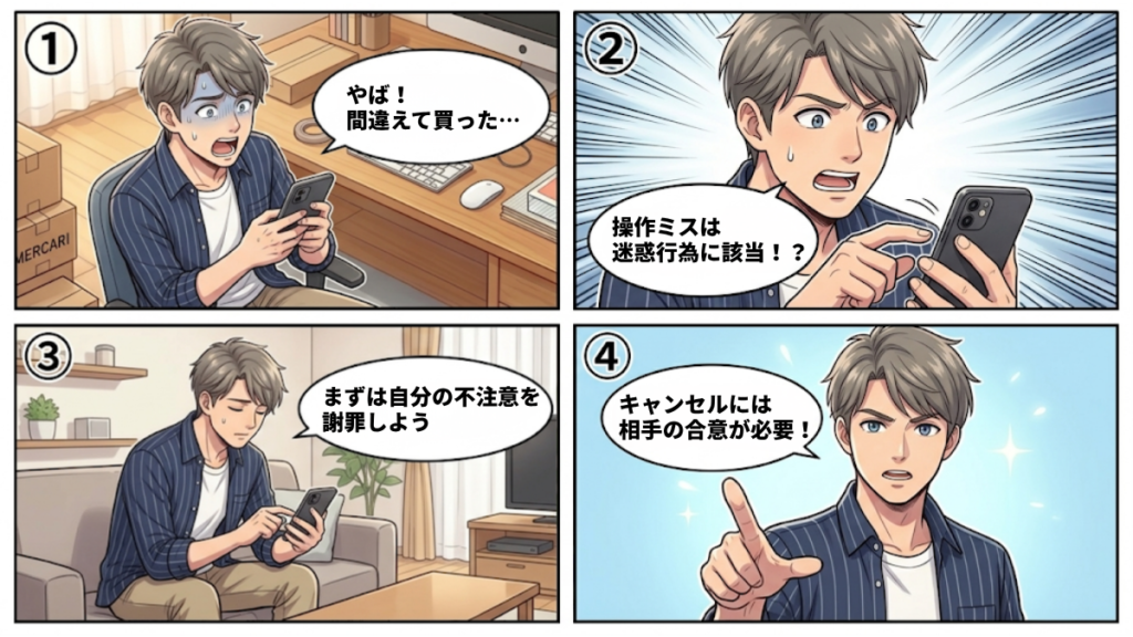 - 「メルカリで間違えて購入したからキャンセルしたい」