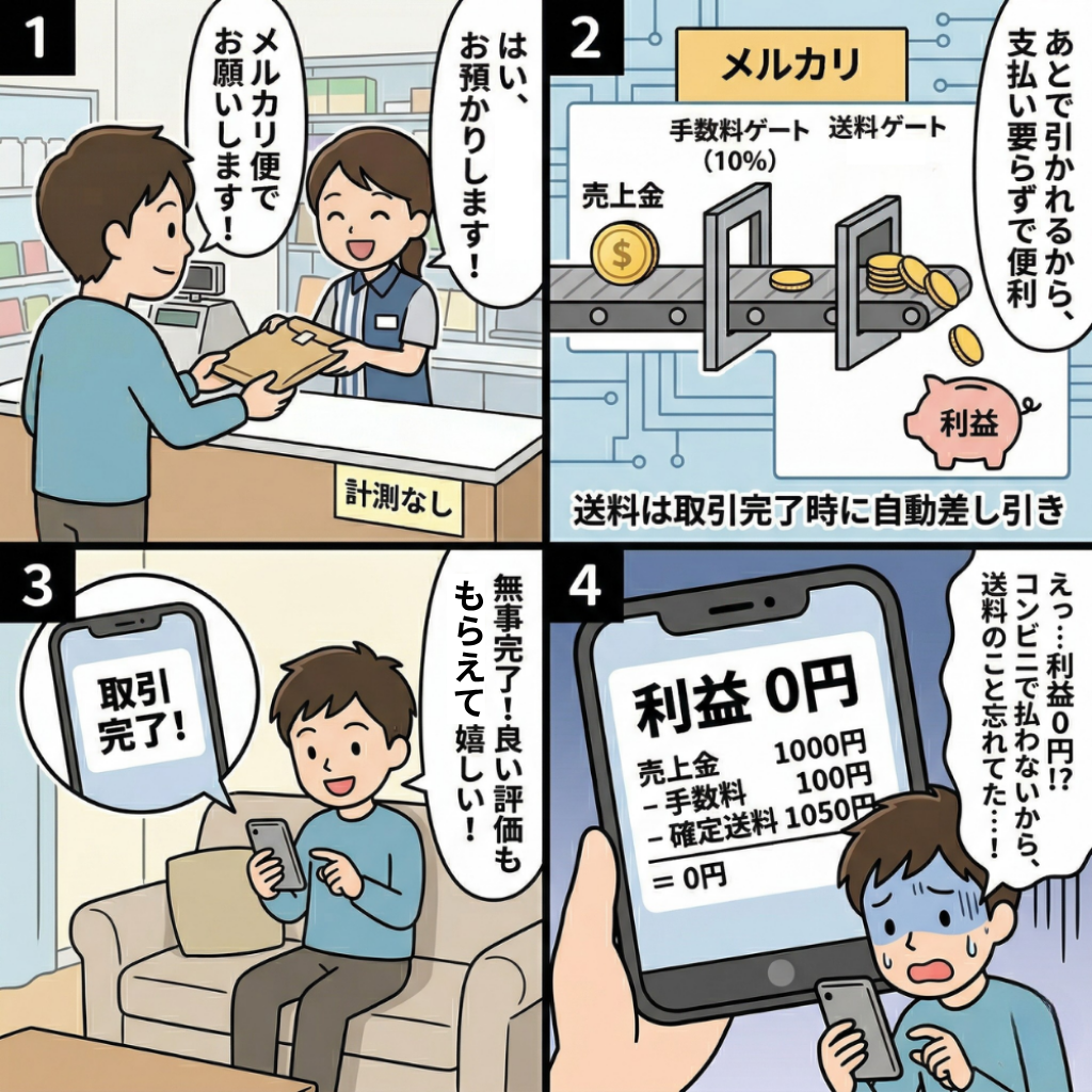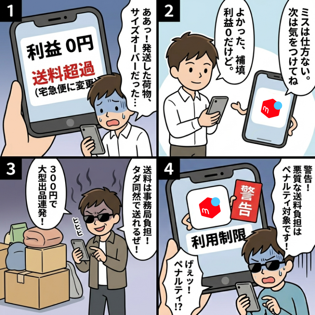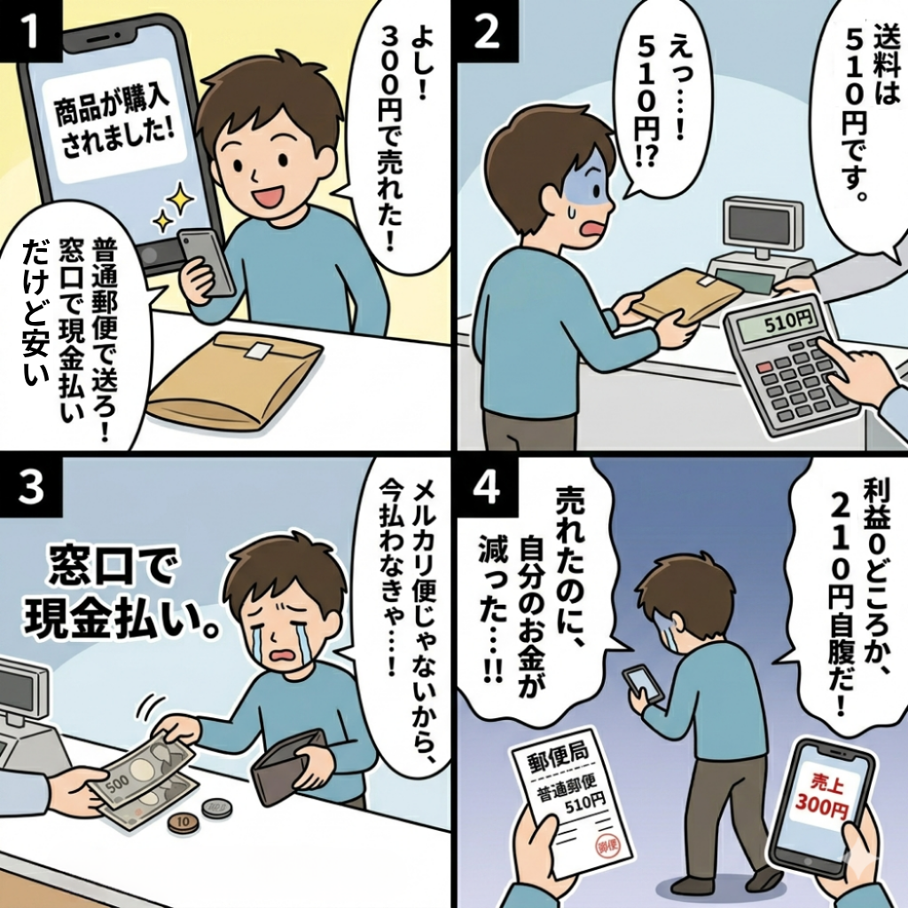 - 「メルカリで300円で売れたけど送料で赤字…これ、後から請求される?」