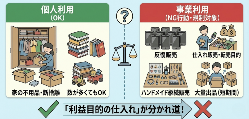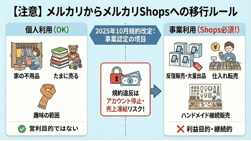 運営は「個人」と「事業」の線引きを進めており、知らずに使っているとアカウント停止のリスクがあります。