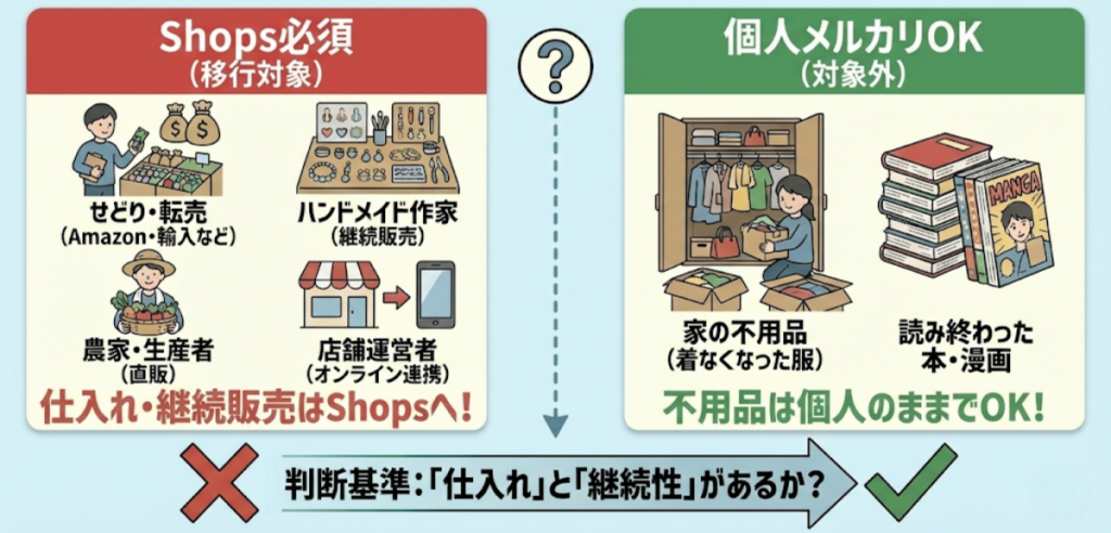 - 必須対応:事業者は「メルカリShops」を利用すること