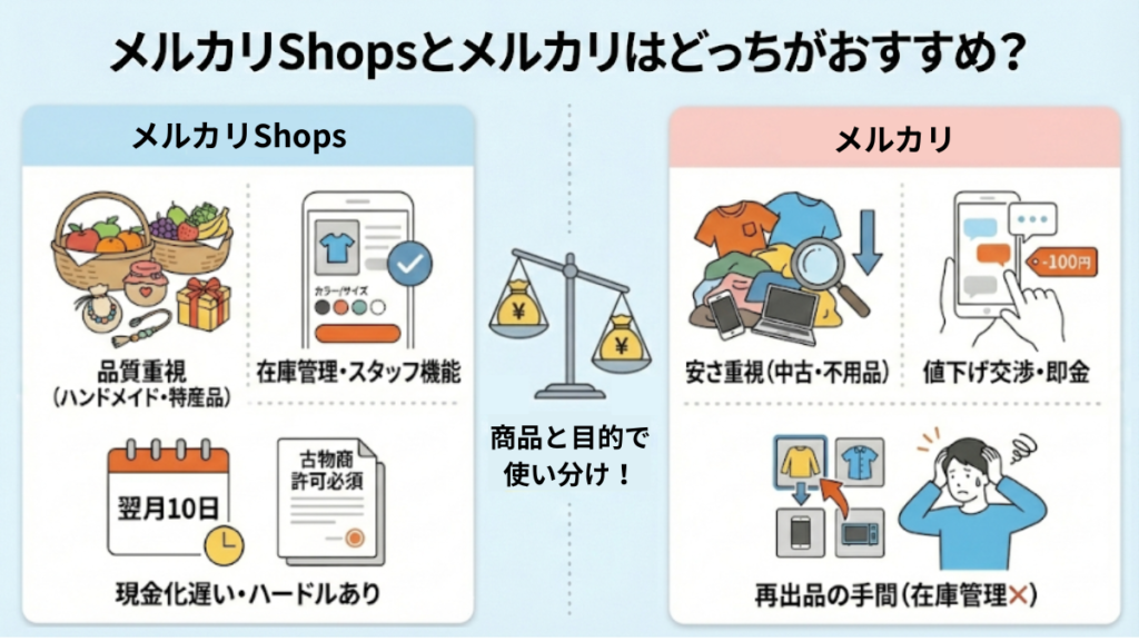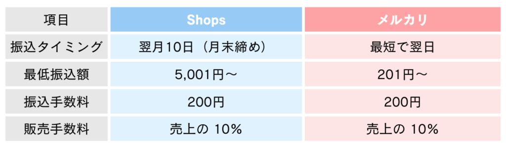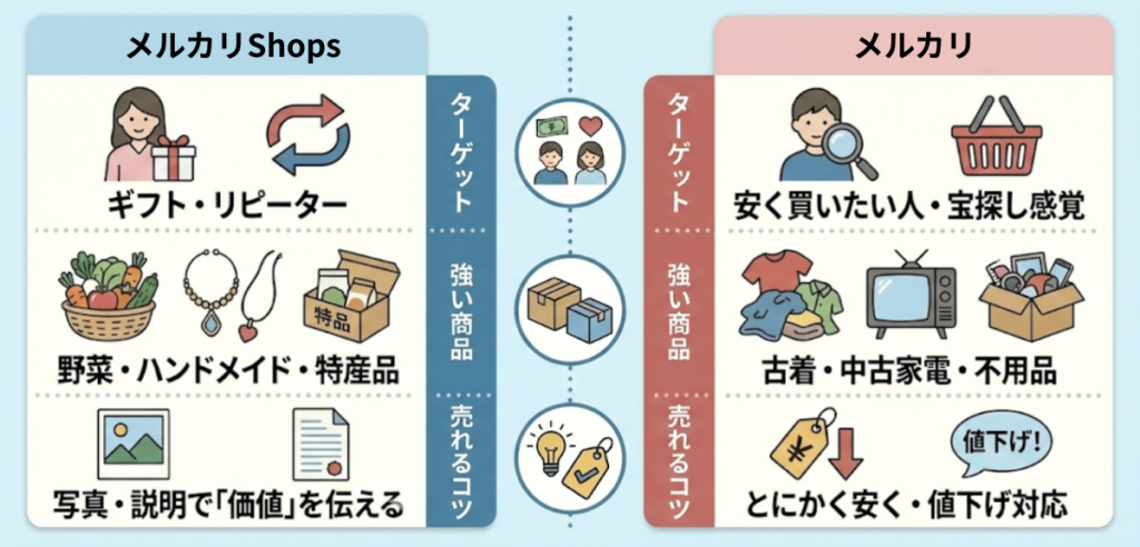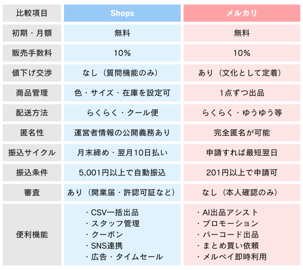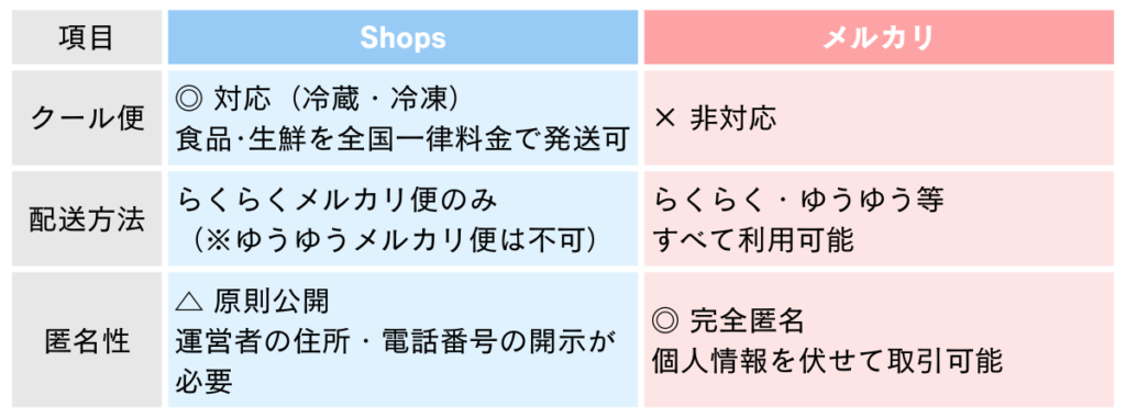 - Shopsとメルカリの主な違い