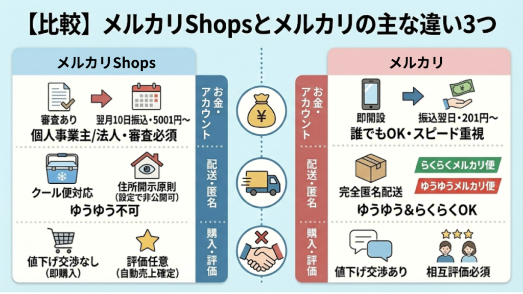 これから副業やビジネスとして本格的に販売を始めるなら、知っておくべき違いを比較表で整理しました。