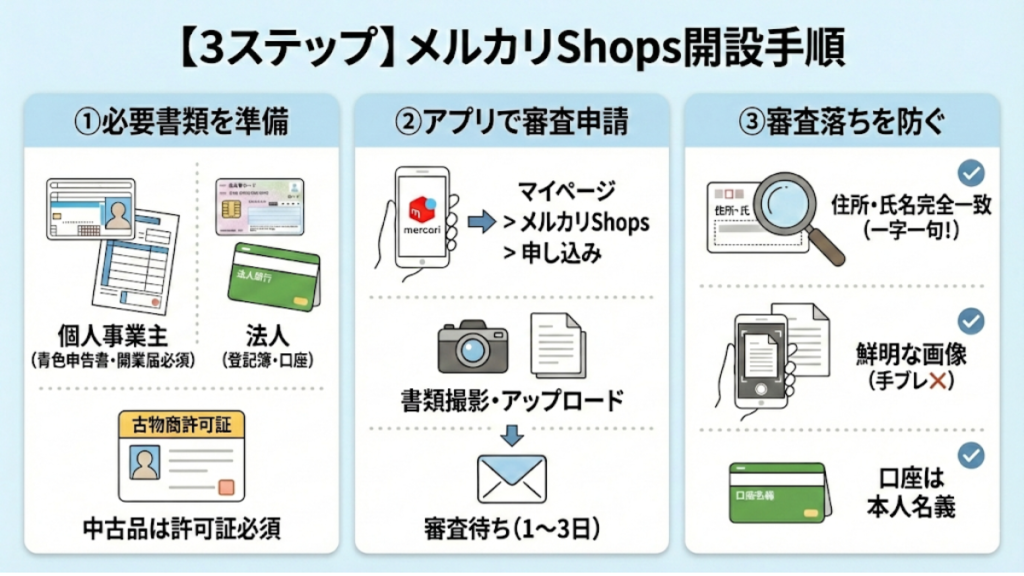 【3ステップ】メルカリShopsの開設手順