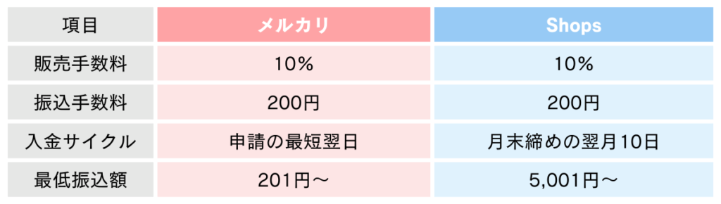 また、Shopsの売上金をそのままメルカリの買い物(メルペイ)には使えず、一度口座に振り込む必要がある点には注意してください。