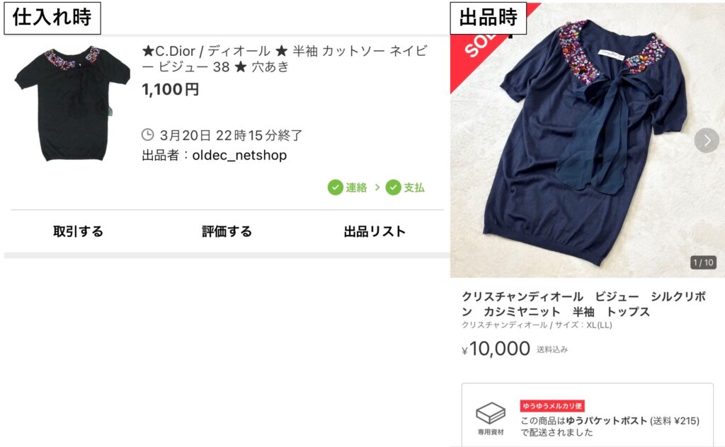 穴あきではありましたが、良質な素材が使われたブランド物ということもあり、手数料・送料を差し引き8,600円の利益となりました!
