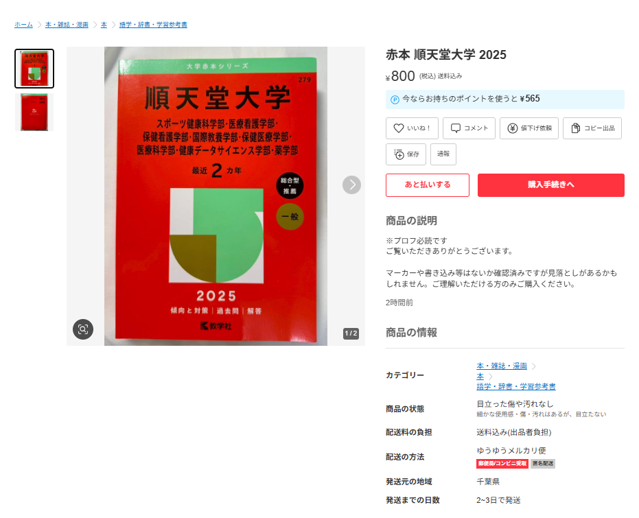 実際に筆者が調べてみたところ、Amazonでは800円で販売されていた商品がメルカリでは2,000円で出品されていました。