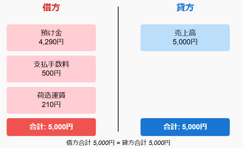 - 5,000円で商品が売れたので、普通郵便で発送した。